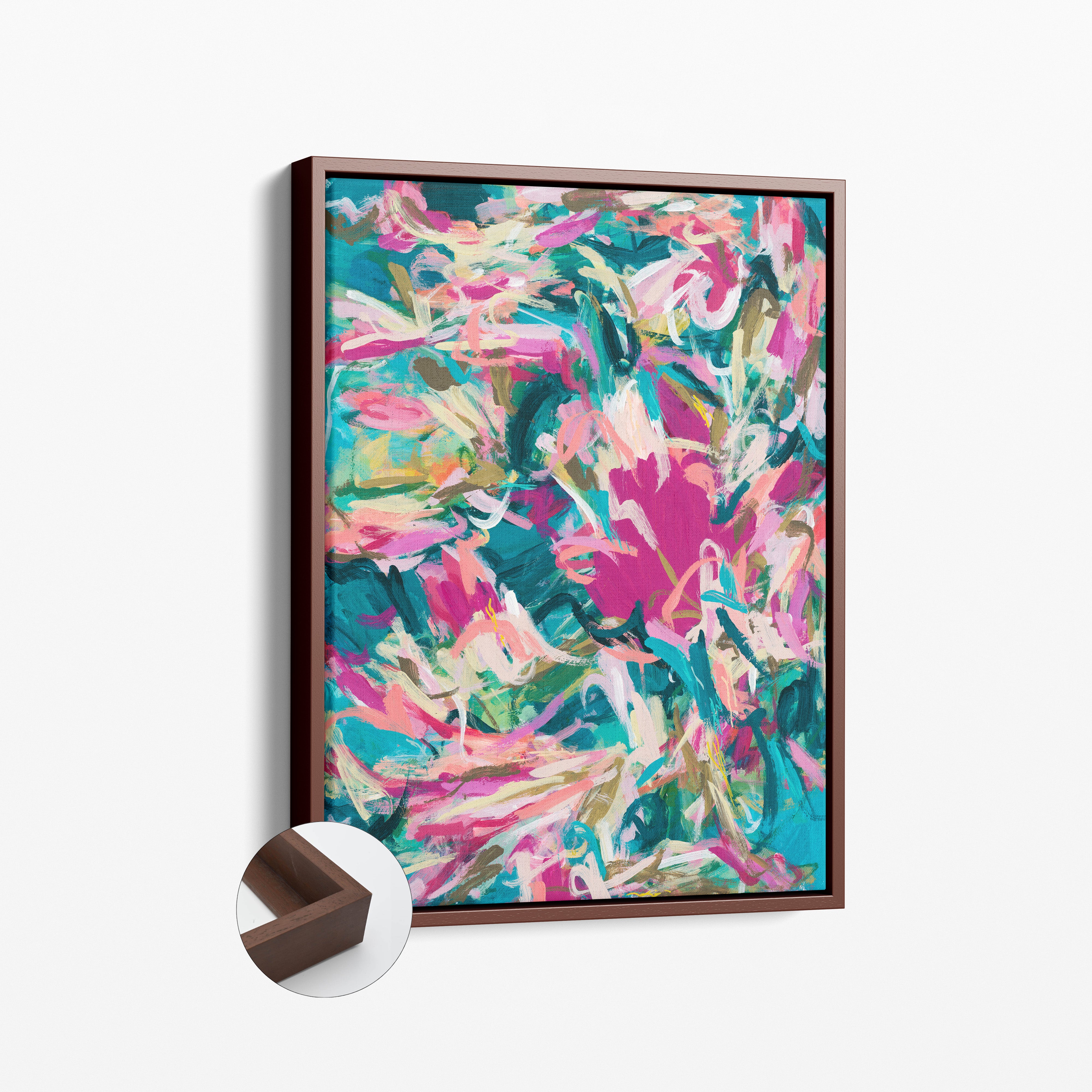 For a sleek, modern look, you can select a floating frame option for your canvas print. Floating frames add a sophisticated touch, giving the illusion that the artwork is “floating” inside the frame.