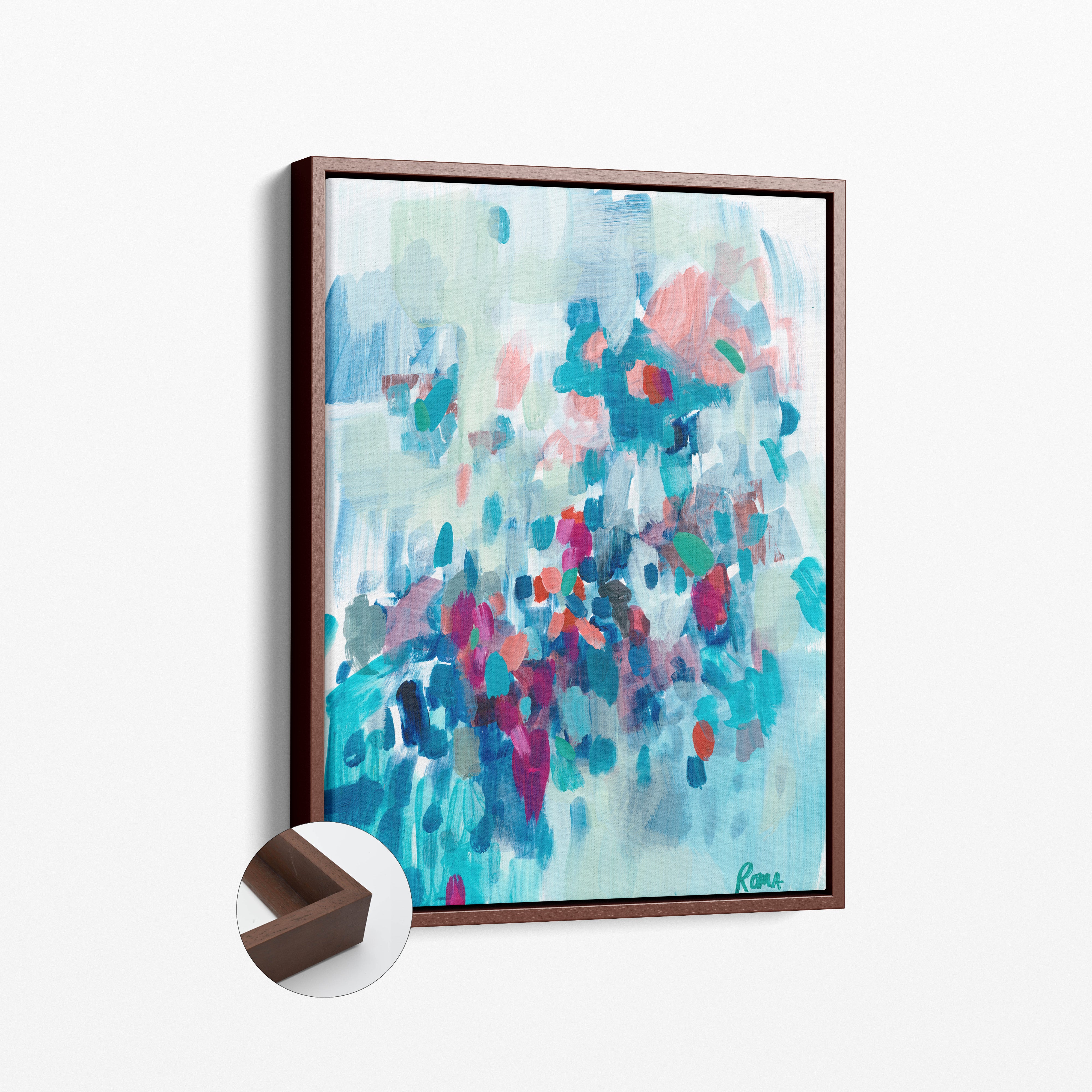 For a sleek, modern look, you can select a floating frame option for your canvas print. Floating frames add a sophisticated touch, giving the illusion that the artwork is “floating” inside the frame.